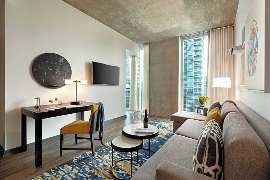 This suite has a balcony with a city view, sofa, and seating area. Extras include a flat-screen TV, fully equipped kitchen, and computer station.