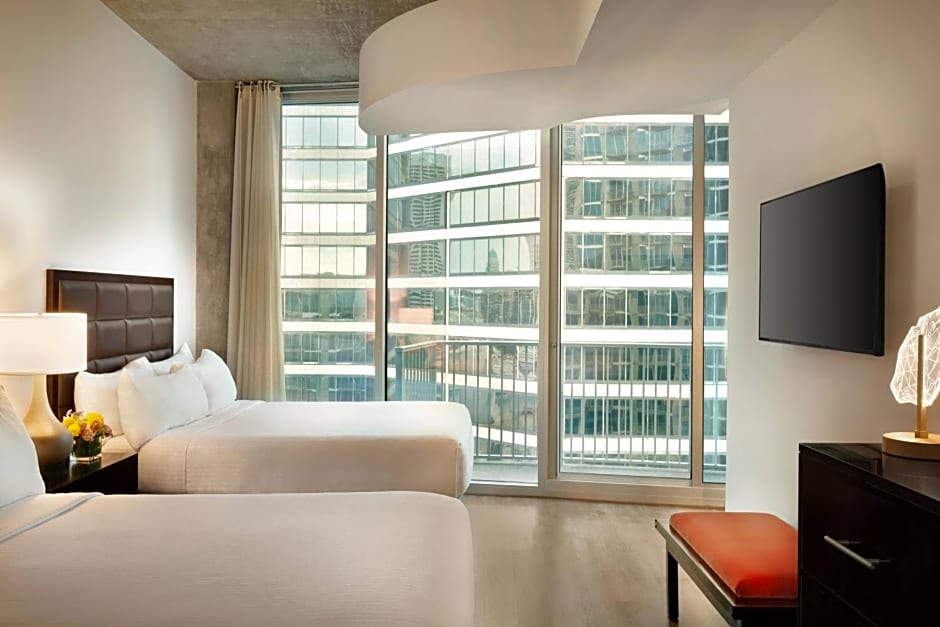 This suite has a balcony with a city view, sofa, and seating area. Extras include a flat-screen TV, fully equipped kitchen, and computer station.
